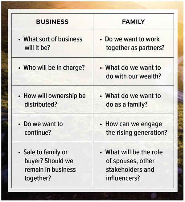 Business and family each have questions that must be answered: