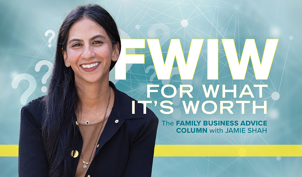 Welcome to “FWIW (For What It’s Worth),” a candid advice column about the triumphs, trials and everything in between of running a family business. Rooted in real-world experience and a deep appreciation for the unique challenges family businesses face, this column offers insights that are well-intentioned, practical and sometimes a little unconventional. Need some guidance on a family business issue? You can anonymously submit a question to Jamie right here.